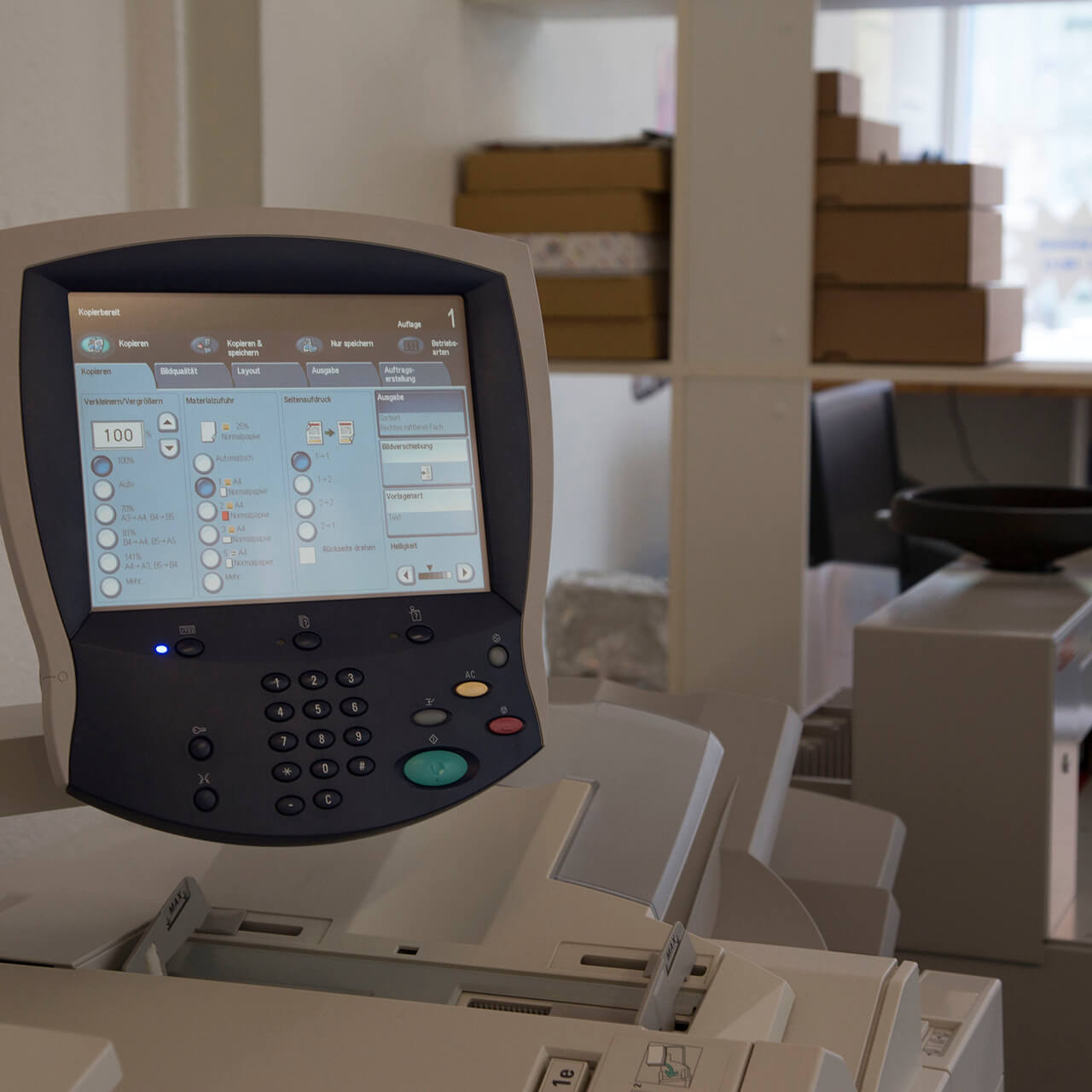 - Professioneller Laserdruck in Farbe oder s/w mit modernen High-End Anlagen.