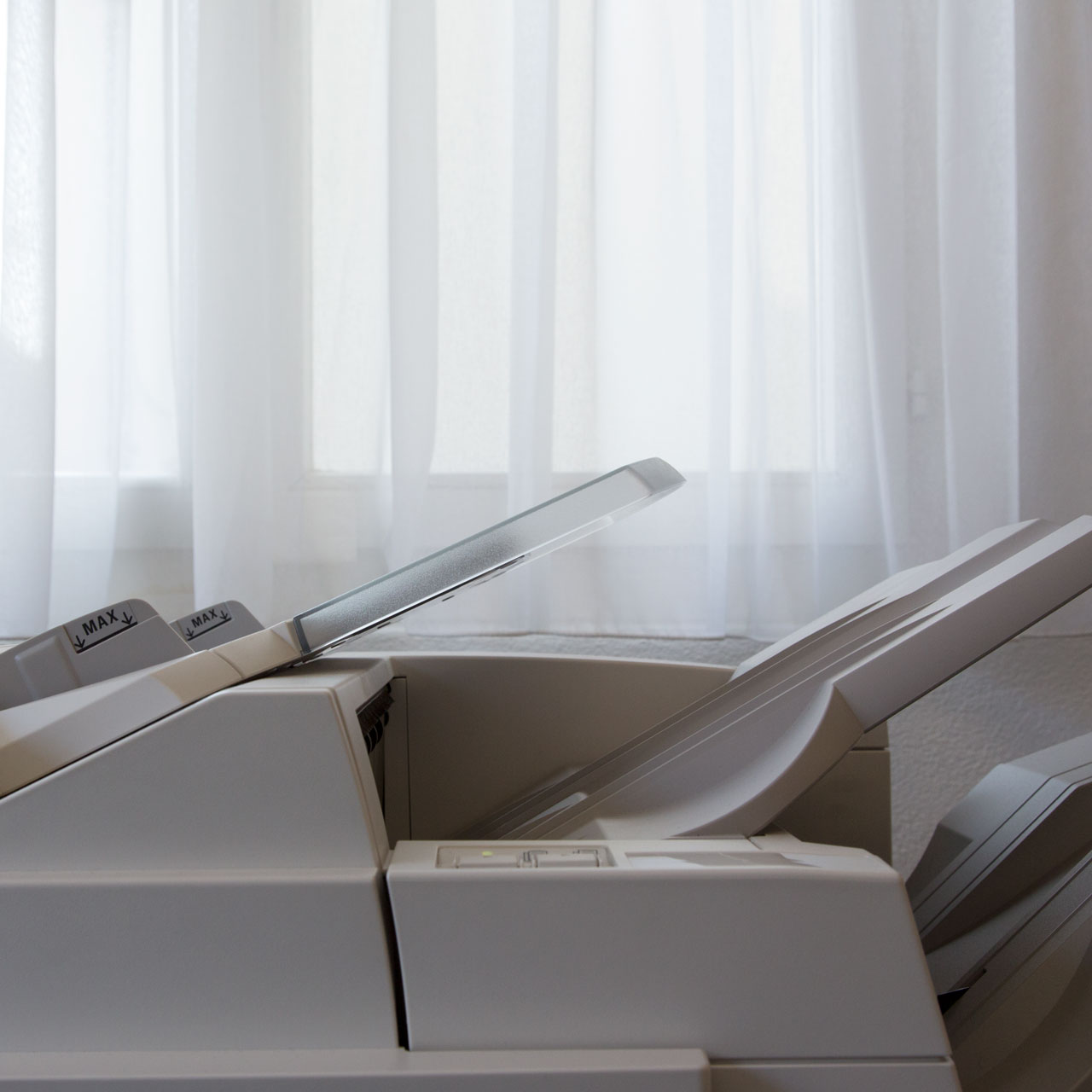 - Es können z.B. auch ganze Papierbündel in A4 (ohne Heftklammern etc.) schnell und effizient per Vorlageneinzug eingescannt werden.